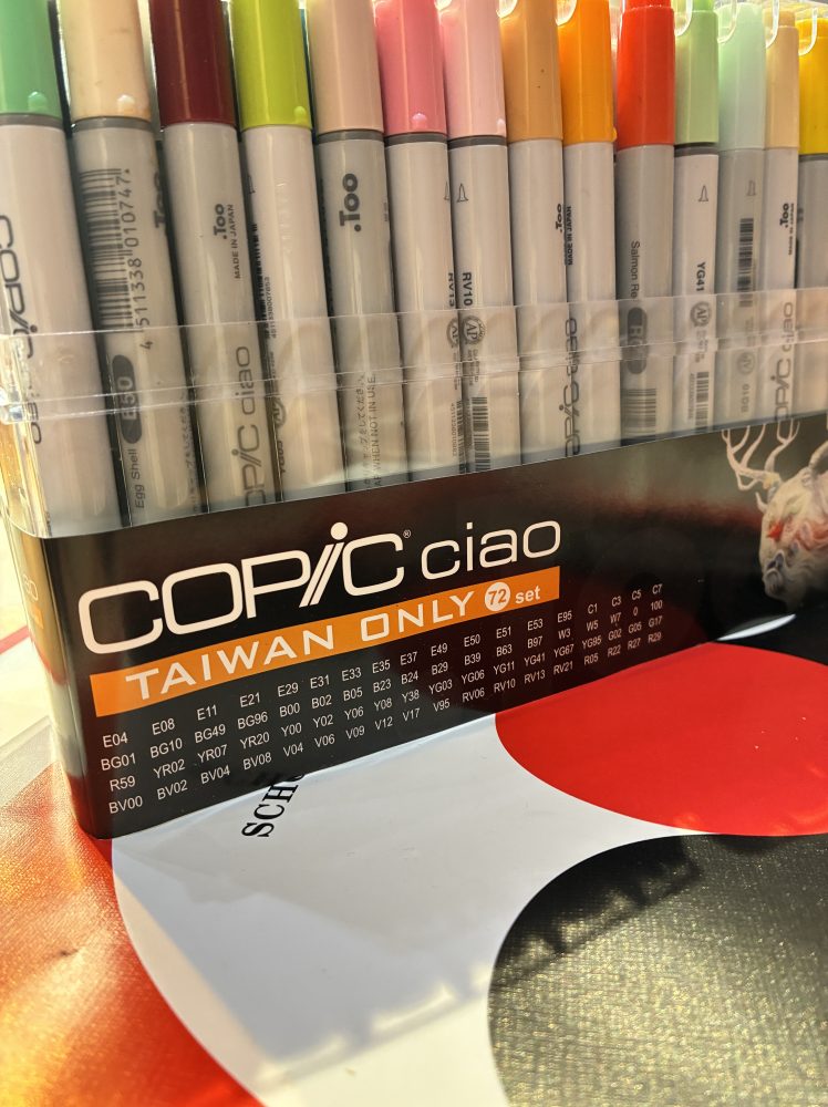 コピックは学生時代から使っていました。色鮮やかで彩度が高く、乾燥が速いことが魅力です。また、混色した際の効果や色味、色の持続性がある点も気に入っています。アルコール性のマーカーで、交換可能なペン先がありインクを補充することができるのも評価しています。そういった点からコピックマーカーはアーティストにとって信頼できる最高の画材だと感じています。