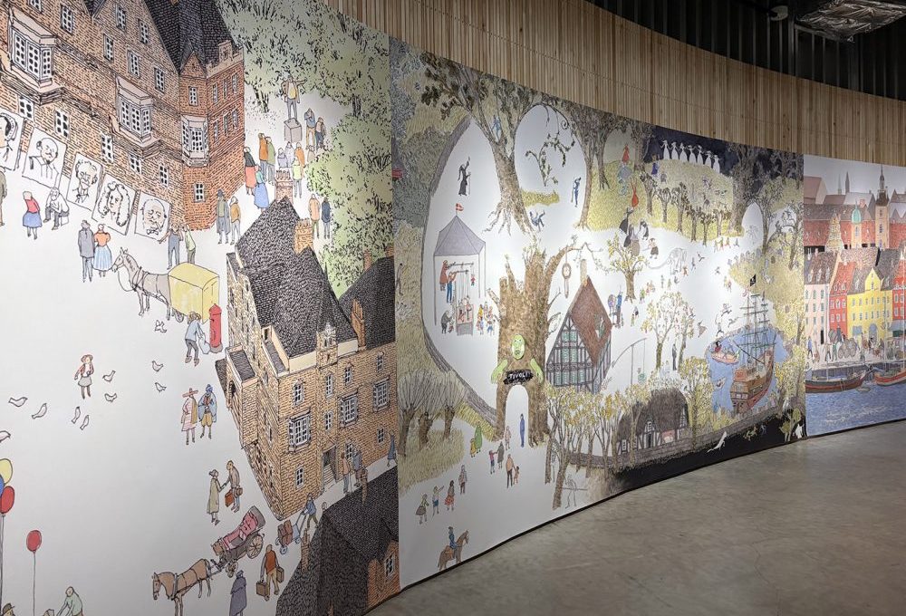 さらに足を進めると、その先には『旅の絵本』シリーズの中から厳選した8つの場面が、高さ3メートル×長さ50メートルに大きく引き延ばされた空間が広がる。細密に描きこまれた『旅の絵本』の魅力を、細部まで味わい、楽しめる空間になっている。