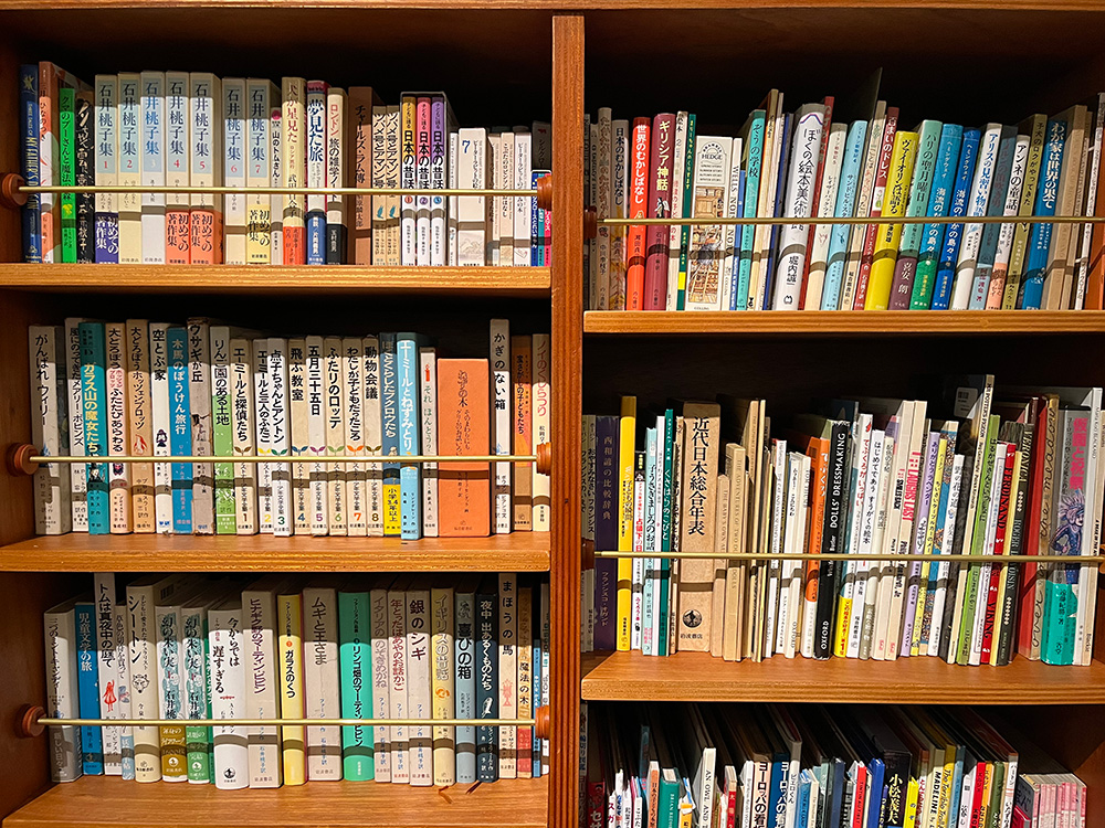また、部屋の壁際にはびっしり埋まった本棚が並び、その読書家ぶりがうかがえる。室内にはなんと約2,000冊の書籍が展示されており、なかには小学生のころに読んでいた本も。原書を読んでみたいと買い求めた洋書も100冊ほどある。