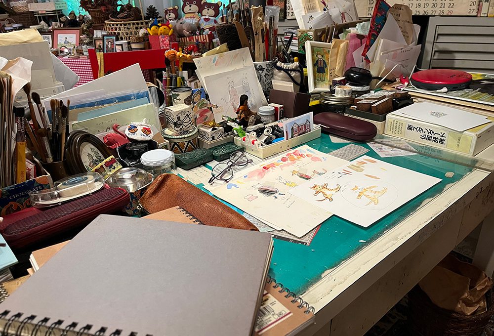 そうした縁が続くなか、25年前に宮﨑駿さんとともに山脇さんの自宅を訪れた香月さん。打ち合わせの合間に見せてもらった仕事部屋の様子が忘れられず、以来ずっと山脇さんの展示を開催したいと考えてきたという。
