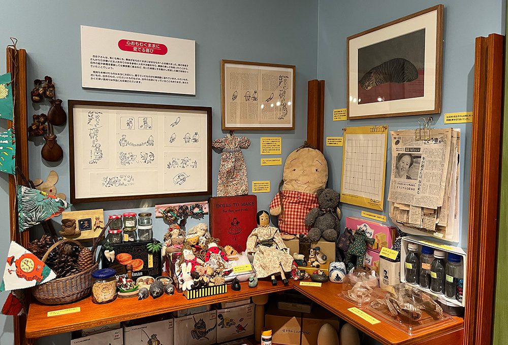 「とにかく物が多くて、どれをどう見せるか整理するのが大変だった」と準備期間を振り返るジブリ美術館館長の香月さん。棚などに収まりきらないものは床にも置かれ、今にも山脇さんが部屋に戻ってきそうな気配さえ感じられた。部屋のあちこちにあるかわいらしい小物たちにも注目してほしい。