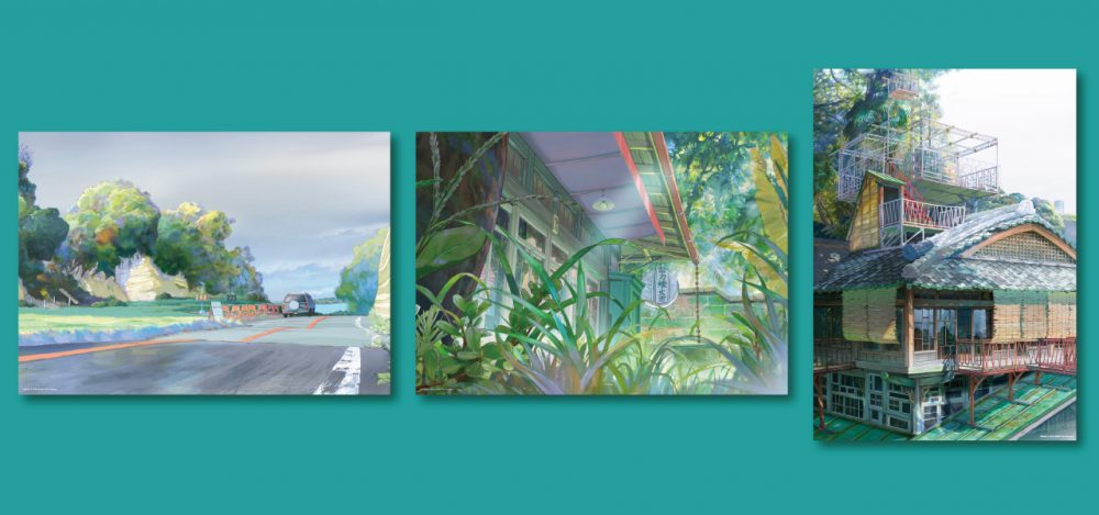 映画「花緑青が明ける日に」展では、映画の印象的なシーンを切り取った「場面写」や、場面の方向性、色調、光のあたり方、質感などを決めるための指針となる背景画である「美術ボード」を展示し作品を紹介する。ラストシーンの「場面写」の展示は、映画公開日に解禁される。