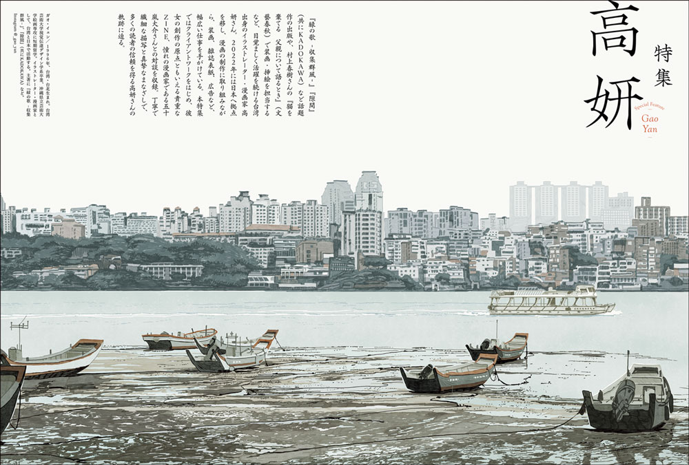 イラストレーター・漫画家として活躍する高妍さんを大特集します。商業デビュー作『緑の歌ー収集群風ー』や『隙間』、村上春樹さん著『猫を棄てる 父親について語るとき』の装画・挿絵をはじめとしたクライアントワークを多数掲載します。クライアントとイメージをすり合わせる「ラフ」も特別公開。