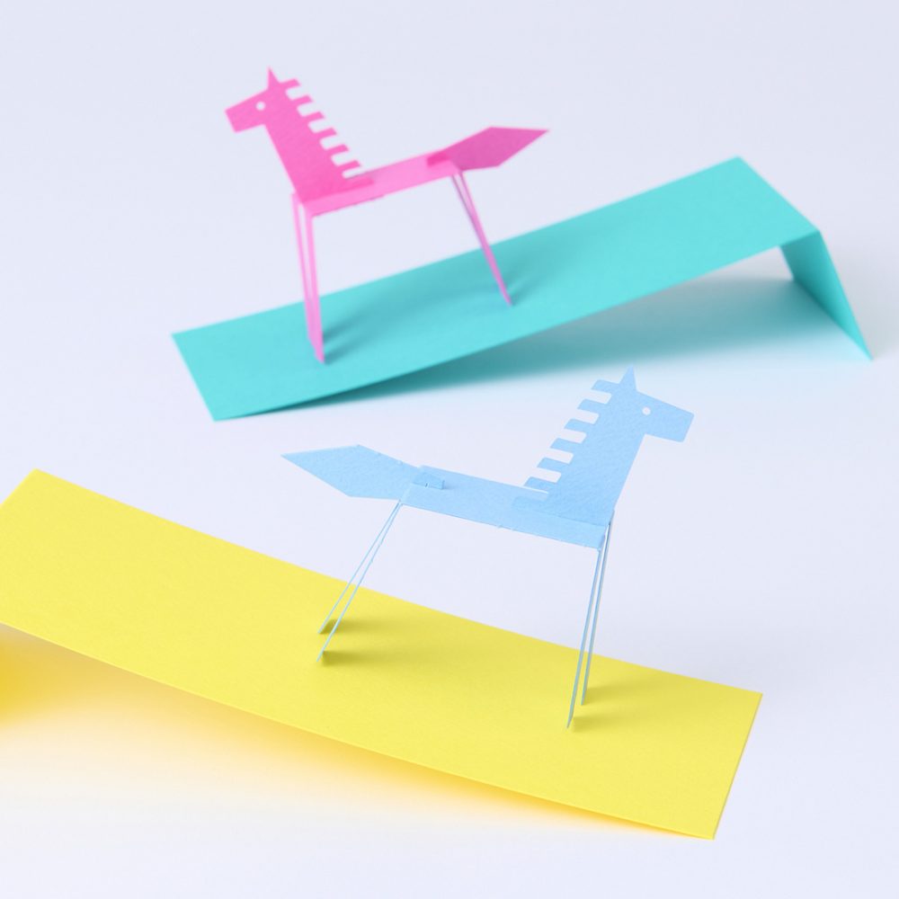 2013年のへび年に「大人だけでなく子供も触って楽しめる干支のカードをつくろう」という思いからスタートした「遊べる年賀状」シリーズ。紙を折ったり切ったり、別の素材と組み合わせたり、毎年試行錯誤を重ね、へびがペロペロ、さるがスイスイ、たつがクルクル……遊んでも、飾っても楽しい十二支が揃いました。