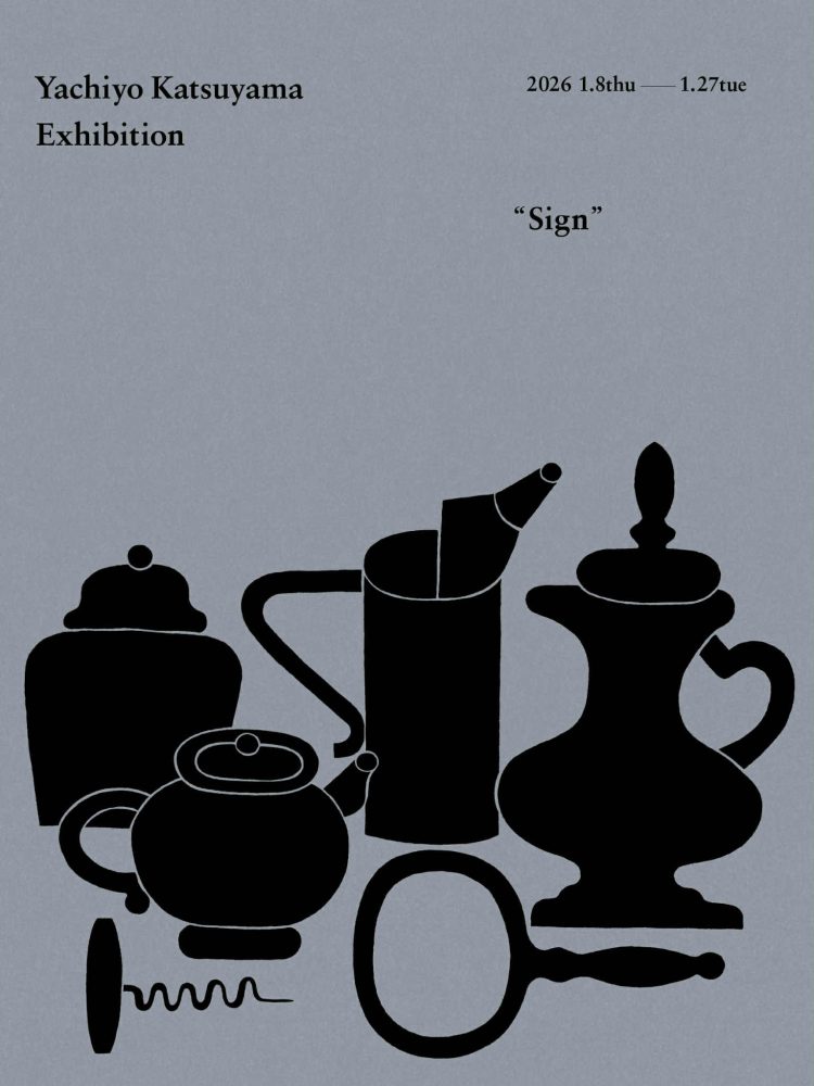 白、黒、茶など、抑制されたシンプルな色合いを基調とし 、物や人物のモチーフを描く勝山さん。本展では、2024年から2025年に制作した作品を中心に、モチーフが語る生活の気配を意識して描いた「Sign」シリーズのほか、2023年のロンドン旅行をテーマにしたシリーズなどを展示。また、「実在しない音楽のマーチャンダイズ」をプロダクト化することを目的としスタートしたTシャツレーベル「TACOMA FUJI RECORDS」とコラボレーションした、ロングスリーブTシャツとトートバッグの販売も。日常の中に漂う微かな痕跡や予感を、研ぎ澄まされた線で捉えた「sign」をぜひ会場でご覧ください。