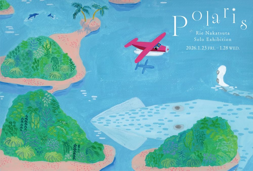 海に浮かぶ島々や、絶え間なく揺れる波、森の木漏れ日。“北極星”を頼りに進み続ける物語を想像しながら描いたという、美しい作品の数々を見ることができます。平面作品のほか、4層を重ねた半立体作品、光を当てるとさりげなくキラキラと光る作品など、原画で見るとよりその世界観を味わえるはずです。ぜひ会場にて、中蔦さんの自由な世界を旅してみてはいかがでしょうか。