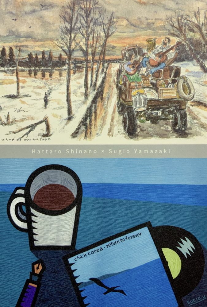 イラストレーター・山﨑杉夫さんと信濃八太郎さんの2人展が、南青山のスペースユイで開催されています。