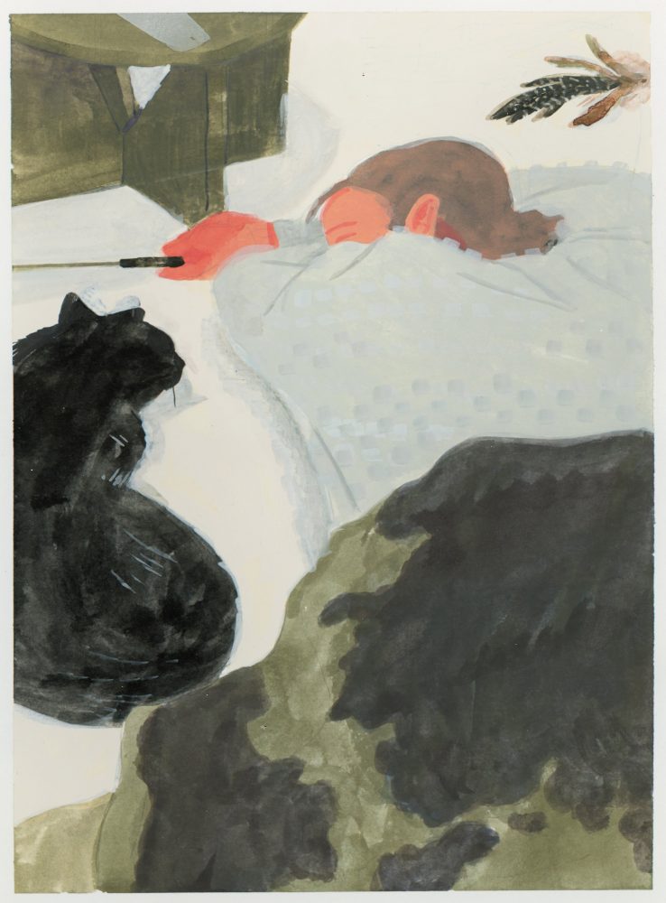 日々、散歩をしながら景色を撮影しているという堀井さん。偶然映り込む人の仕草や背格好から、「どんな人が、なぜそこにいるのだろう」と想像を巡らせているのだそう。本展では、堀井さんなりに、「状況」(シチュエーション)が変化していく過程を楽しみながら描いたという作品が並びます。また展示される作品は、支持体やサイズ感、塗り方などを探ったという実験的なものが多く、新たな魅力を感じられるはずです。さまざまな「状況」の中にある空気感をぜひお楽しみください。