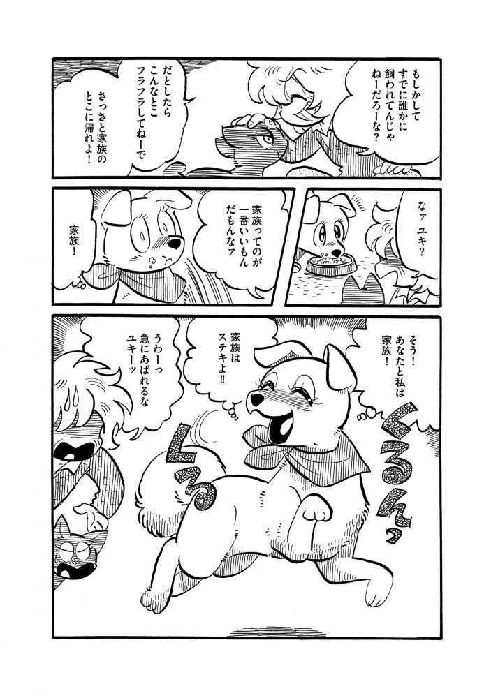 ある寒い雪の日、ダンボールに入れて捨てられていたところを心優しいご主人に拾われた犬のユキ。ぶっきらぼうながらも大切に育ててくれるご主人に、言葉は伝わらずとも、ユキはいつも大きな愛情を伝えようとします。